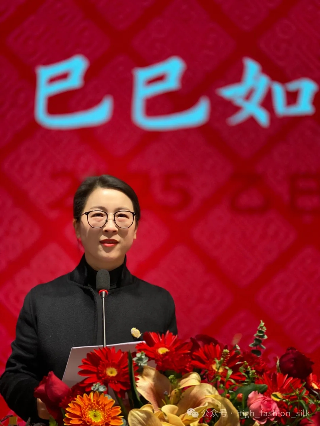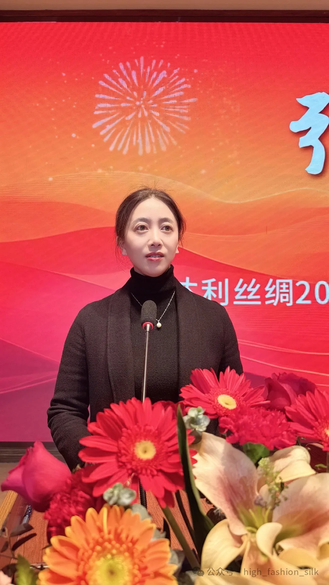 公司董事總經理張金珍做達利絲綢2024年度工作總結報告和2025年度工作部署。2024年,公司堅持“穩中求進,守正創新,數智賦能,綠色發展,共同富裕”的發展戰略,以“文化、科技、時尚、綠色、健康”打造新質生產力,工業總產值、營業收入、稅收貢獻均創歷史新高,生產梭織真絲綢緞超1000萬米,各類圓機面料700余噸,人均創GDP近200萬元人民幣,月入萬元以上的員工有658 人,實現了公司發展史上具有里程碑意義的高質量躍升。